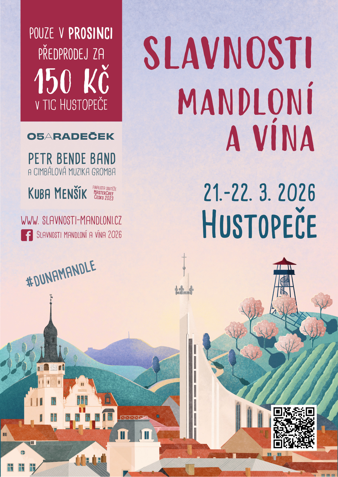 Hlavní program Slavností mandloní 2026 máme kompletní, proto nic nebrání tomu, aby si obyvatelé Hustopečí mohli zakoupit vstupenky ještě v prosinci - třeba jako vánoční dáreček! A to za pouhých 150 Kč!